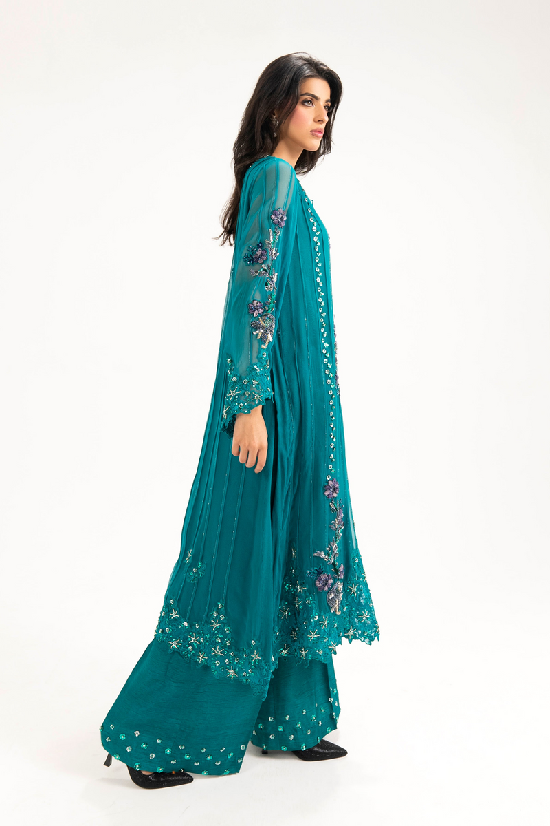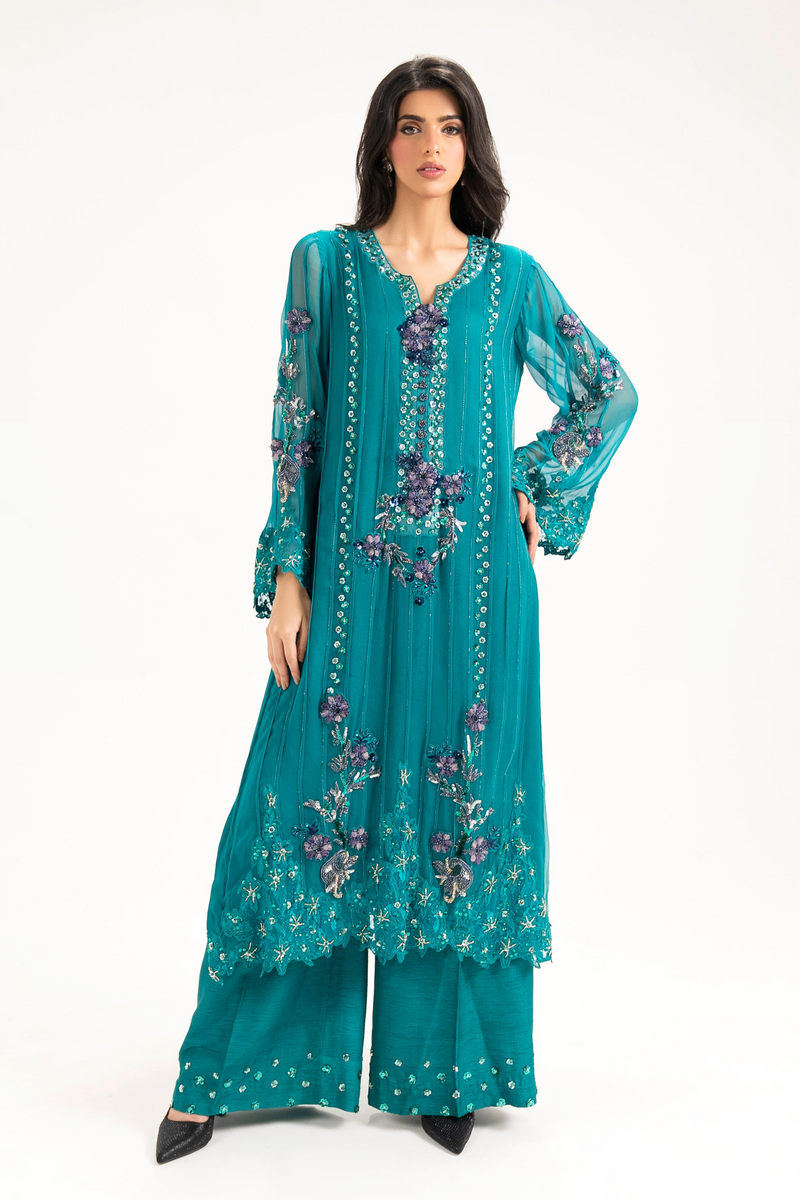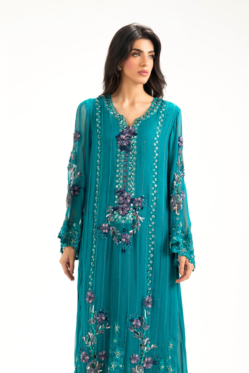 Shirt & Dupatta: Made from premium Pakistani Chiffon, delicately hand-embellished to perfection